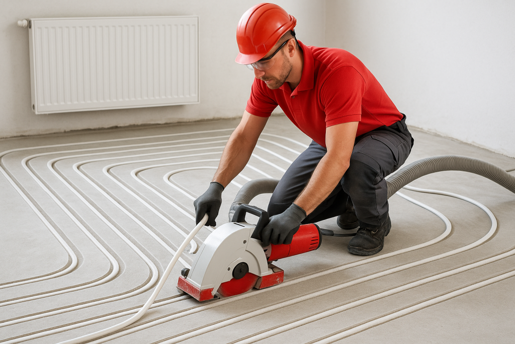 Heizrohrkanäle fräsen und integrieren – effiziente Fußbodenheizung ohne Abriss