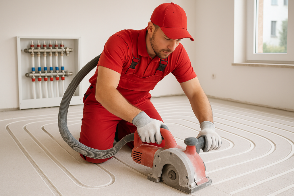 Heizungsbau mit Fußbodenheizung: Fußbodenheizung fräsen und nachrüsten mit MYN FRÄSEN